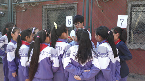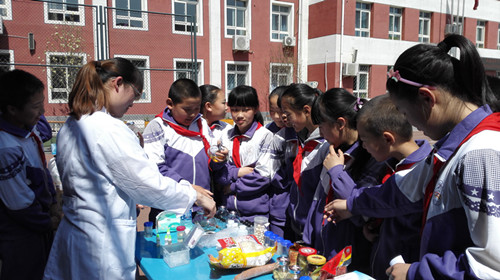 技術(shù)人員指導(dǎo)小學(xué)生現(xiàn)場動(dòng)手實(shí)驗(yàn)檢測地溝油