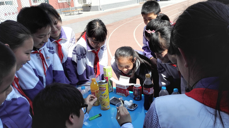 校園食育展覽,是2015北京市教委創(chuàng)新人才培養(yǎng)項(xiàng)目之—,“由食物認(rèn)識自我,探索世界”。本次展覽主要分為參觀食安知識海報(bào)和參觀食安快檢實(shí)驗(yàn)兩部分,我們準(zhǔn)備的5個(gè)實(shí)驗(yàn):亞硝酸鹽超標(biāo)食品檢測、經(jīng)二氧化硫漂白食品的檢測、地溝油和安全食用油的鑒別、奶茶和橙汁的勾兌制作以及可樂含糖量和薯片含油量實(shí)驗(yàn),深受小學(xué)生們的喜愛。