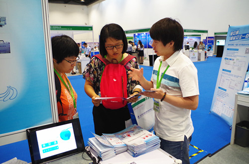 智云達(dá)軟件部技術(shù)人員向參展人員講解食品安全追溯平臺