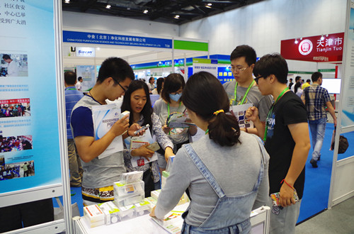 在家庭食品安全快速檢測體驗(yàn)區(qū),智云達(dá)展臺前早已涌現(xiàn)了大批自行攜帶疑似問題食品的消費(fèi)者,讓個(gè)人送檢不再難。我們的技術(shù)人員正在為前來檢測的消費(fèi)者一一檢測,并現(xiàn)場解疑,兩個(gè)工作人員都忙到手忙腳亂。