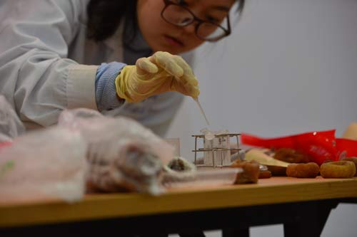 北京智云達(dá)技術(shù)工程師楊老師和王老師首先將柿餅表面的白霜沖洗到水中,再通過使用北京智云達(dá)自主研發(fā)生產(chǎn)的快速檢測產(chǎn)品:果糖和葡萄糖快速檢測試劑,對樣品溶液的果糖和葡萄糖含量進(jìn)行檢測,而淀粉含量通過碘溶液進(jìn)行測定。