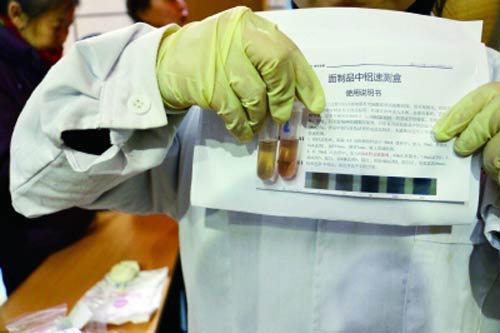 2016年12月14日9:00, 北京智云達(dá)與法制晚報(bào)聯(lián)手走進(jìn)朝陽區(qū)農(nóng)光里中社區(qū)居委會(huì),與社區(qū)20余位居民一起實(shí)驗(yàn)檢測饅頭中明礬的含量。