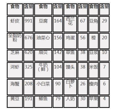 本文關鍵詞:補鈣 牛奶 蝦皮 黑芝麻 全脂奶粉 河蝦 豆腐