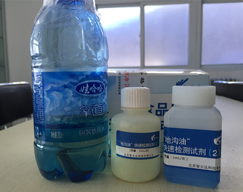 家在浙江的高女士前幾日給我們消費(fèi)者體驗(yàn)中心寄來了一個(gè)油的樣品,請(qǐng)我們幫忙檢測(cè)是否是地溝油。1、極性標(biāo)志物的檢測(cè)將待測(cè)油樣混勻,用0.2 mL塑料吸管取油樣,滴6滴于玻璃比色管中,加入1 mL試劑1,搖動(dòng)30秒,沸水中煮5分鐘。取出冷卻,與標(biāo)準(zhǔn)比色管對(duì)比。樣品溶液顏色接近比色管的紅色,該指標(biāo)為陽性。2、酸價(jià)、水分的檢測(cè)用0.2 mL塑料滴管取油樣,滴6滴于玻璃...[詳情]