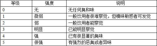 臭和味:去水樣100ml,置于三角瓶中,振搖后聞水的氣味,用適當的詞句描述,并按六級記錄其強度。同時取少量的水入口,不要下咽,嘗嘗水的味道,并加以描述,按六級記錄其強度。