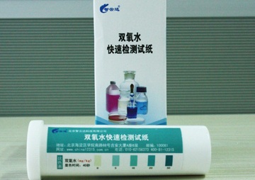 利用雙氧水與試紙上的藥劑發生顯色反應,試紙的顏色變化反應出食品中雙氧水的含量。