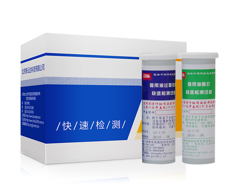 以紙片作為載體做成卡片形式,通過顯色劑與游離脂肪酸或過氧化物進行反應,其在紙片上顯色的程度與游離脂肪酸或過氧化物的含量成正比,以此達到酸價或過氧化值的半定量檢測。