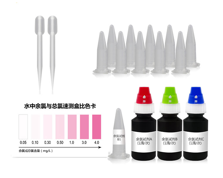 總氯分為游離性余氯(余氯)和結合性余氯。把氯投入水中后,除了與水中有機物、還原物和細菌的殺滅等氧化還原需要消耗的氯以外,水中還剩下的氯,而稱為總氯。游離性余氯,一般指水中的氯分子、次氯酸分子及次氯酸離子??偮群繙p去游離性余氯含量,可得到結合性余氯含量。本試劑盒適用于水中余氯、總氯的現場快速檢測。