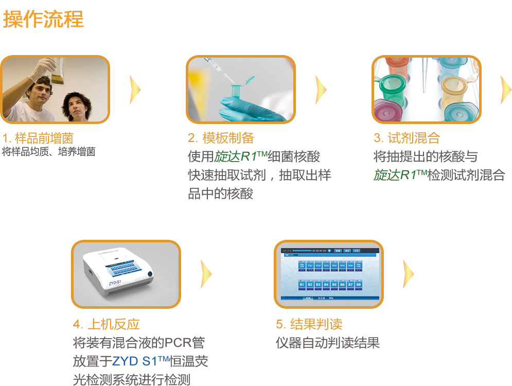 旋達R1?致病微生物檢測系列試劑,基于恒溫擴增技術平臺,以特別設計的2對引物特異性識別檢測靶標的特性基因序列,能快速、準確地檢測出樣品中的特定微生物。