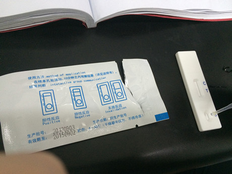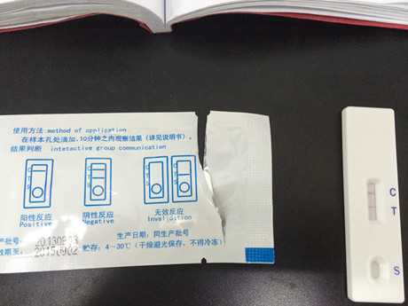 1、 從包裝袋中取出試紙卡,打開后平放在桌面上,用吸管吸取待檢樣品溶液,滴加 3 滴于加樣孔中,加樣后開始計(jì)時(shí)