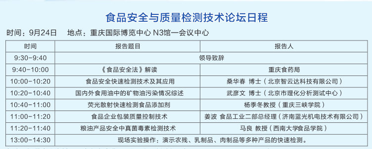 由“食品安全快速檢測網”(www.china12315.com.cn)舉辦,北京智云達提供技術支持開展的《食品安全快檢檢測培訓班》這次培訓班將于2015年9月24日在重慶國際展覽中心開展。