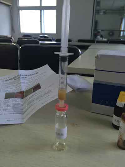 取1支注射器,拔出活塞,接過濾器,過濾器下端置于反應(yīng)瓶口上,將樣品上清液輕輕倒入針筒內(nèi),裝入活塞擠壓,收集濾液于反應(yīng)瓶內(nèi)。