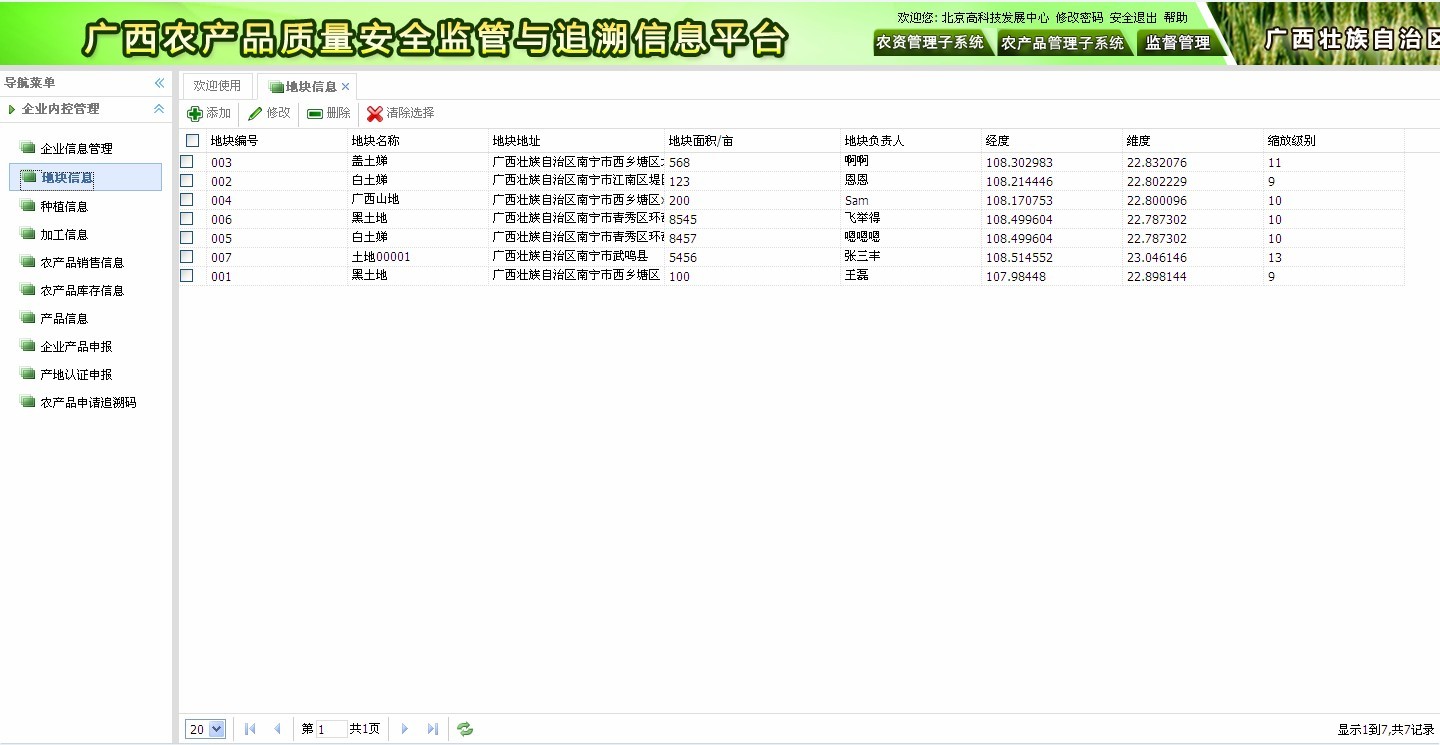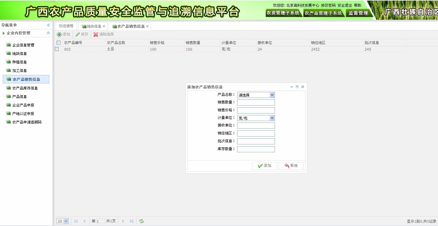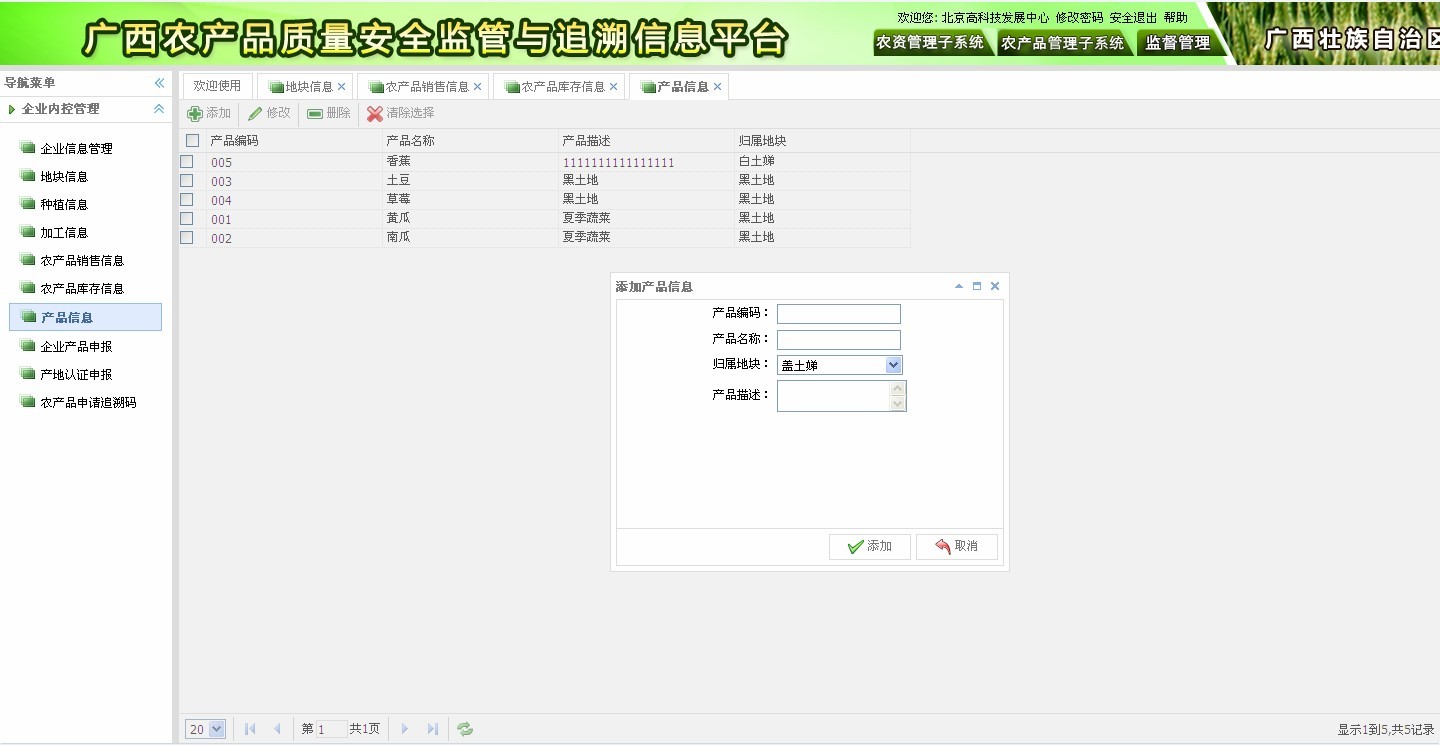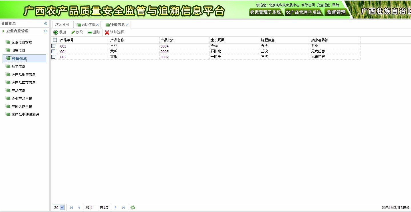 農產品質量安全監管與追溯信息平臺—農產品管理系統