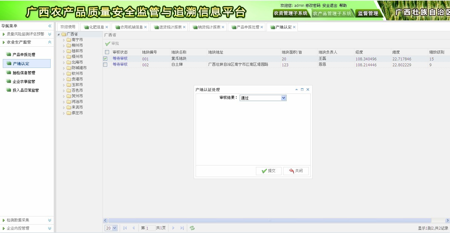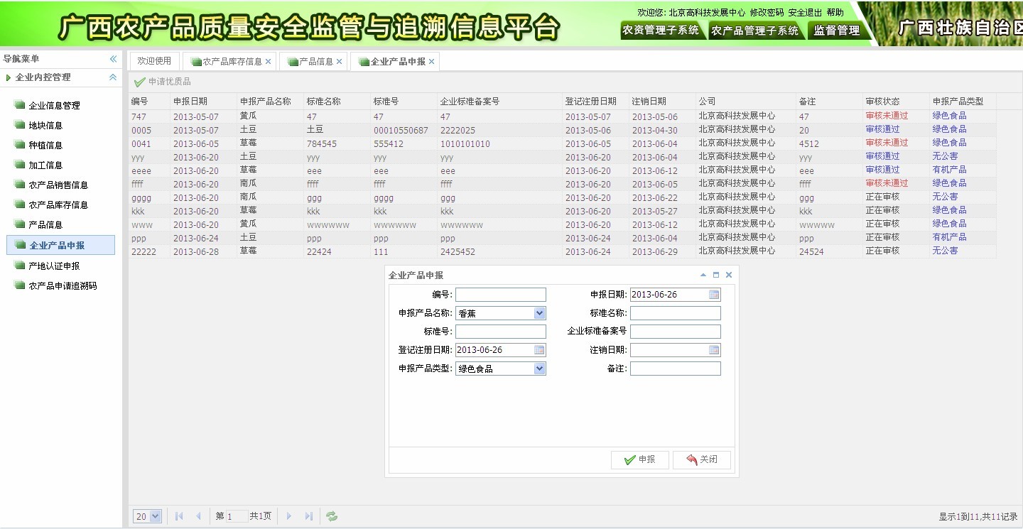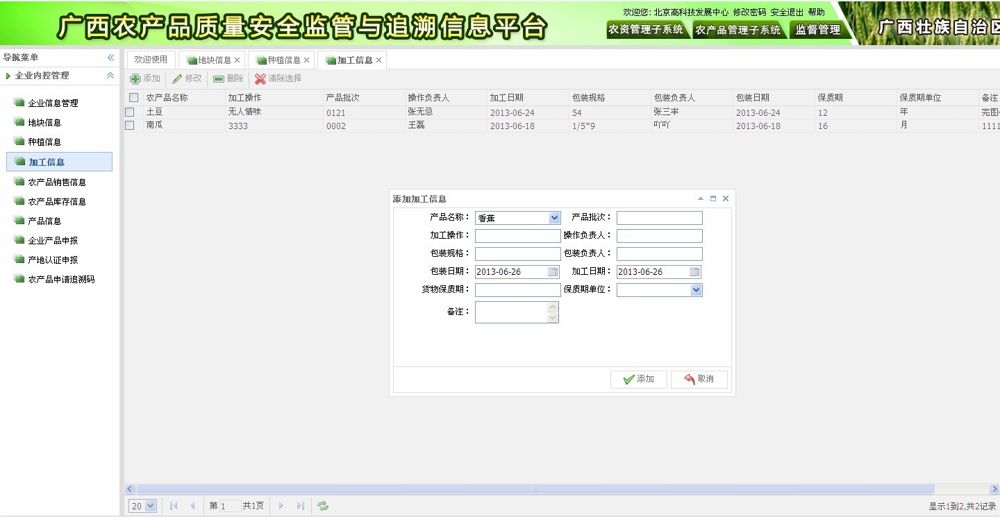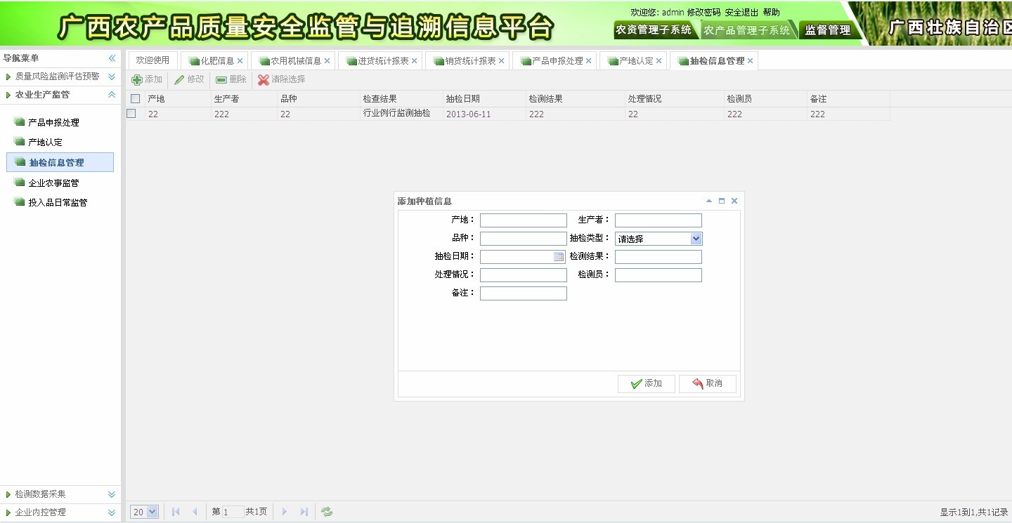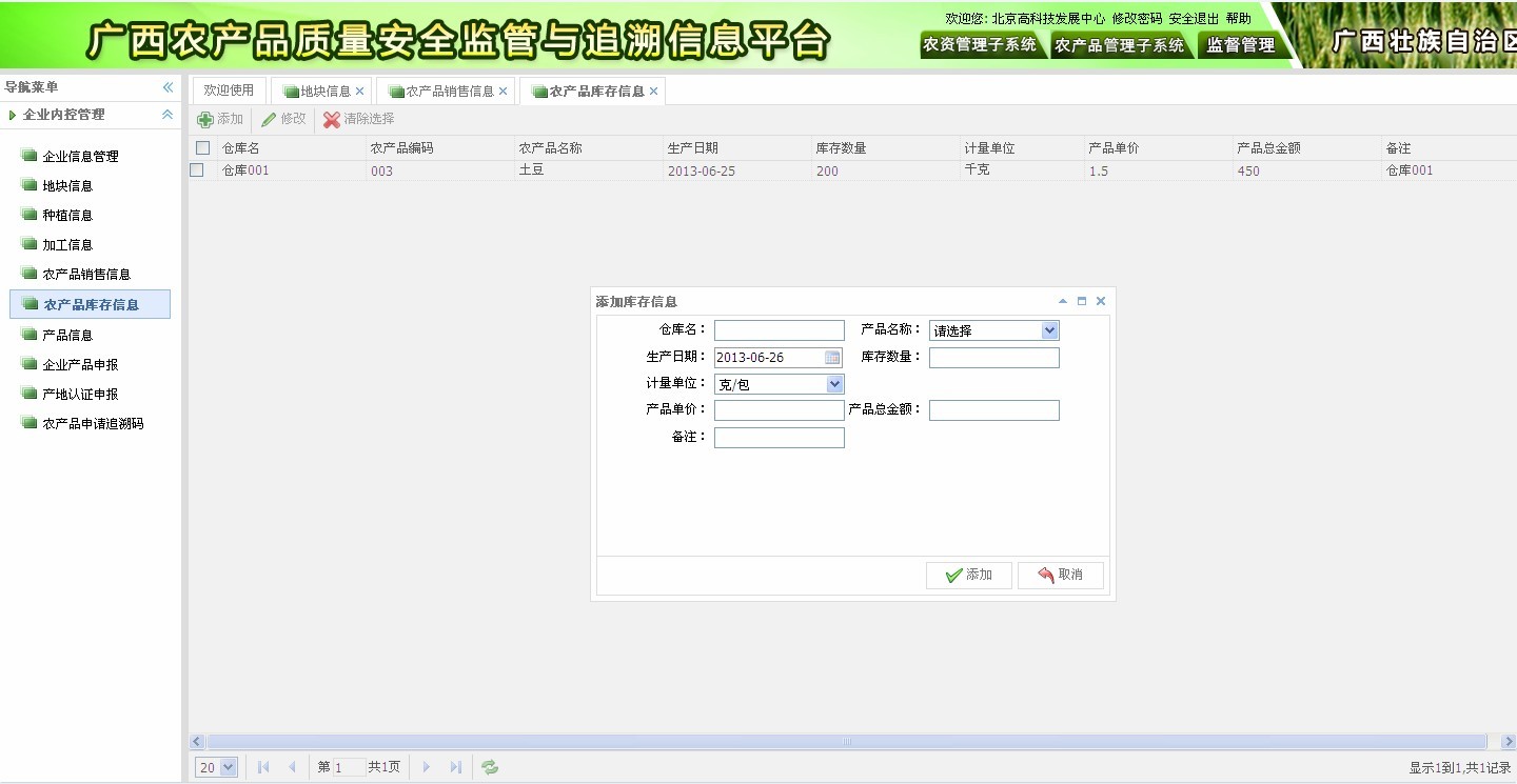 農產品質量安全監管與追溯信息平臺—農產品管理系統