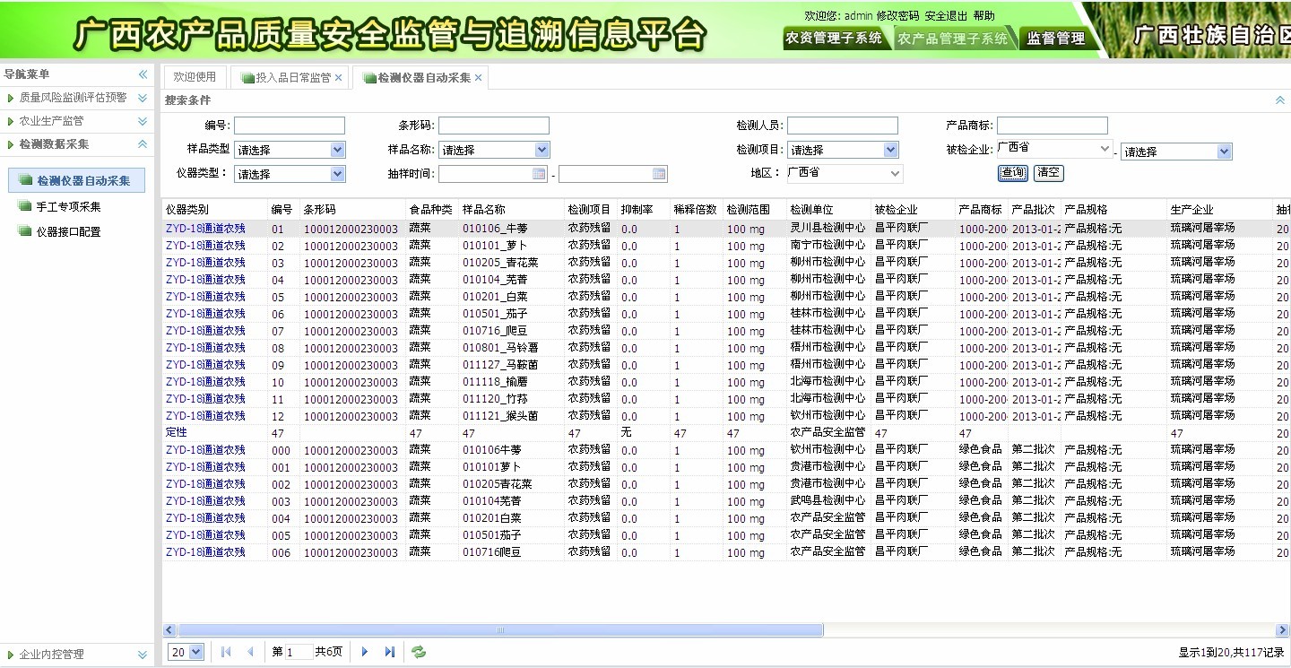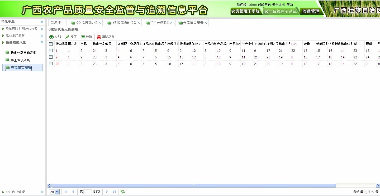 ? 系統跟儀器對接,傳輸檢測數據入庫。并能根據數據自動統計分析。支持多種類儀器,縱向支持區、市、縣、鄉農產品檢測監控工作的資源共享,橫向預留與食品安全監管部門數據共享接口。如圖3-1所示
